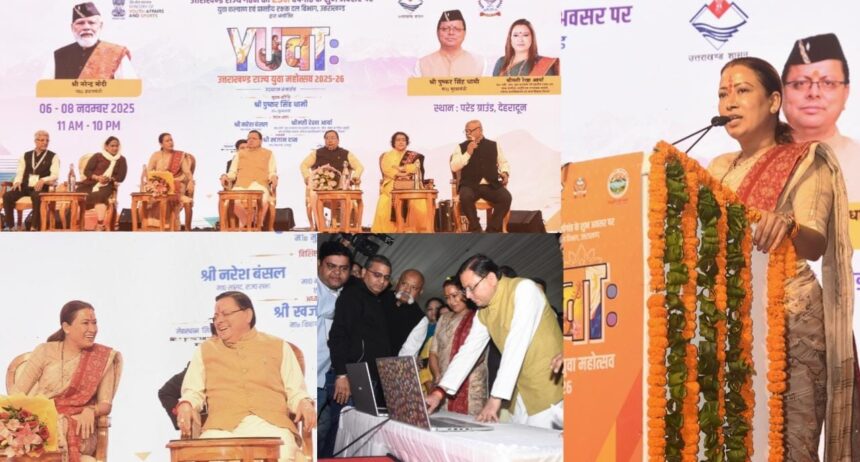 देहरादून:- राज्य स्थापना की रजत जयंती के अवसर पर परेड ग्राउंड देहरादून में गुरुवार को युवा महोत्सव का भव्य और रंगारंग आगाज हुआ। कार्यक्रम का उद्घाटन मुख्यमंत्री पुष्कर सिंह धामी और युवा कल्याण एवं पीआरडी मंत्री रेखा आर्या ने संयुक्त रूप से किया। इस मौके पर प्रदेश भर से आए युवाओं और सांस्कृतिक कलाकारों की सहभागिता ने पूरे परिसर को उत्साह और ऊर्जा से सराबोर कर दिया।