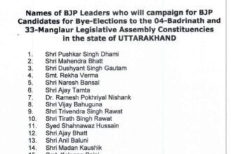 भाजपा ने जारी की अपने स्टार प्रचारकों की लिस्ट,विधानसभा के उपचुनाव के लिए जारी की लिस्ट,उत्तराखंड में हो रहे है दो विधानसभाओं में उप चुनाव